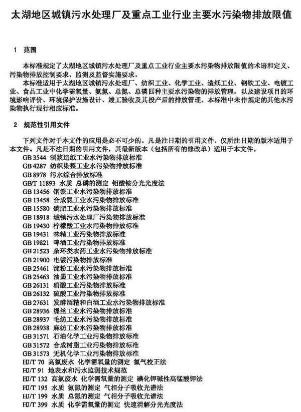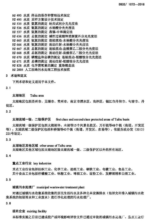 關鍵詞:太湖地區城鎮污水處理廠及重點工業行業主要水污染物排放限值(DB321072-2018)